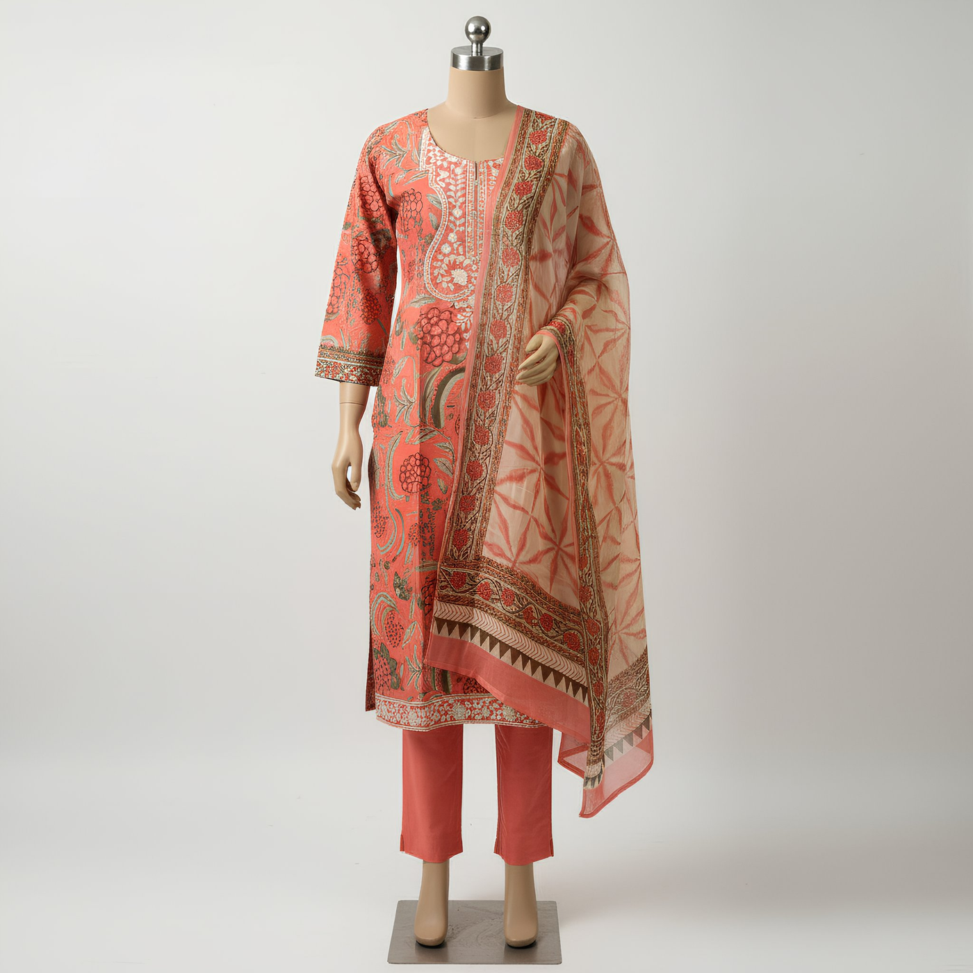 Set Includes: Printed Kurta, Solid Bottom & Printed Dupatta