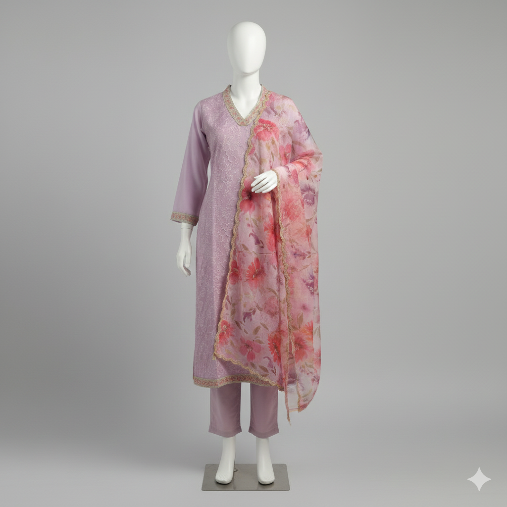 Fabric: Soft Rayon Blend (Kurta & Pant), Lightweight Organza (Dupatta)