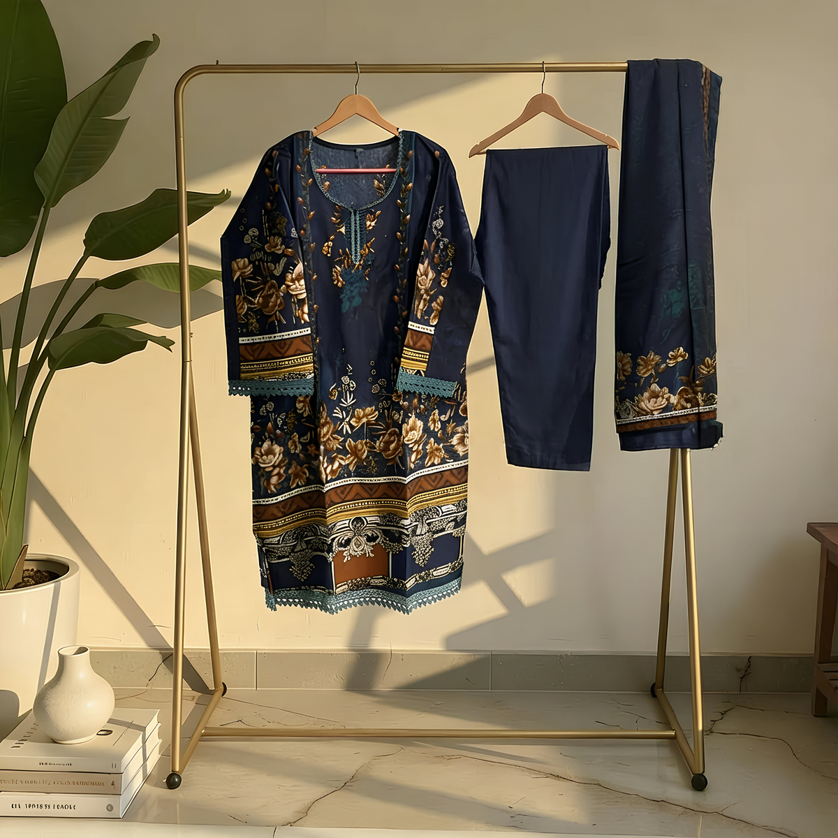 Set Includes: Printed Top, Solid Bottom & Coordinated Dupatta