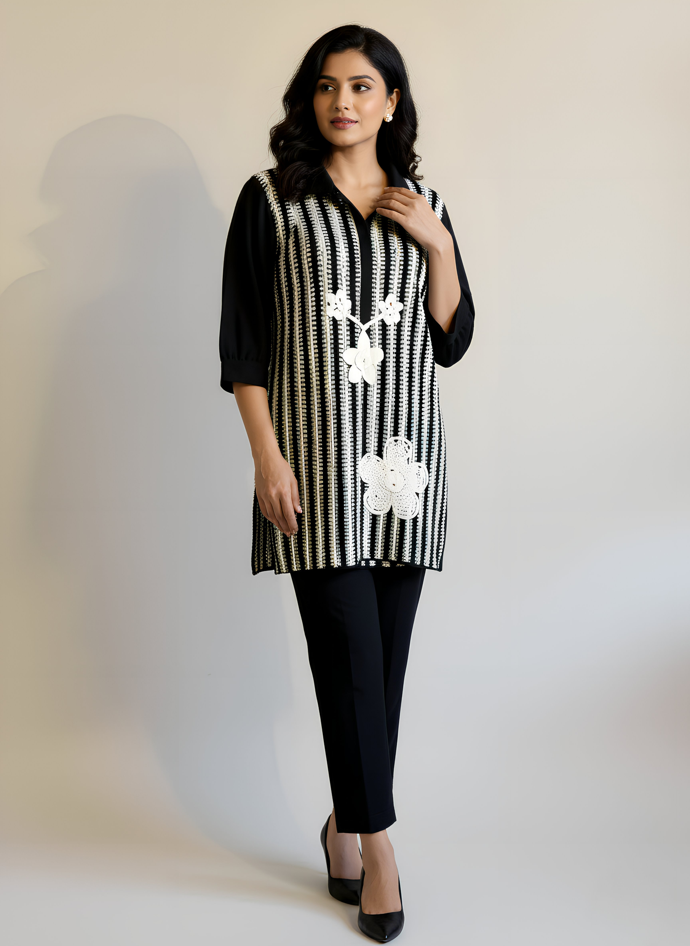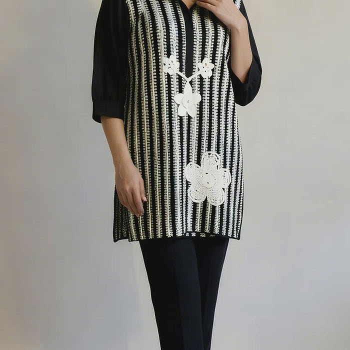 Work: Printed Stripes with Lace Appliqué Floral Work