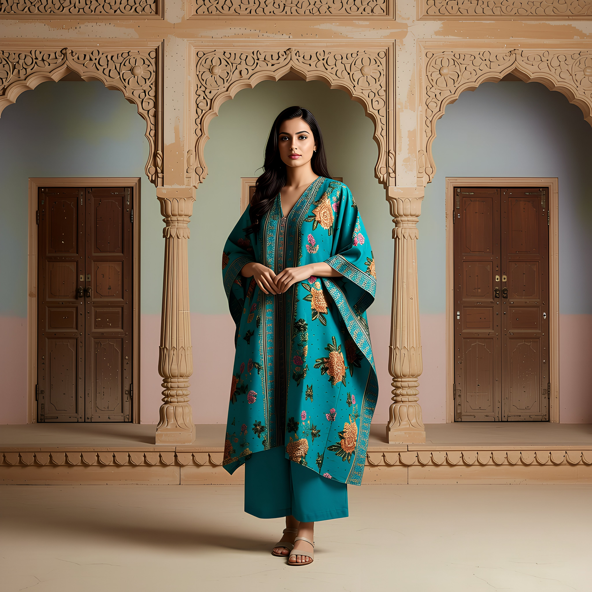 Length: Top – Kaftan-style asymmetric knee length | Bottom – Straight-fit pants