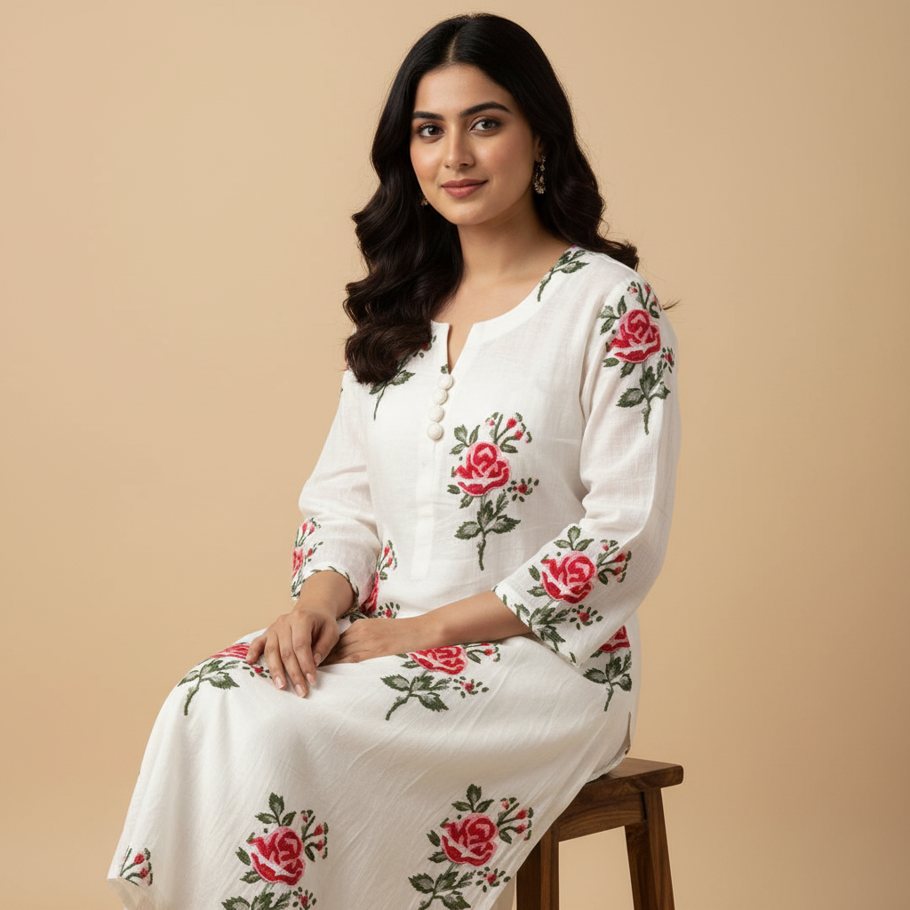 Ivory White Rose Printed Straight Kurta HO2 2XL-7