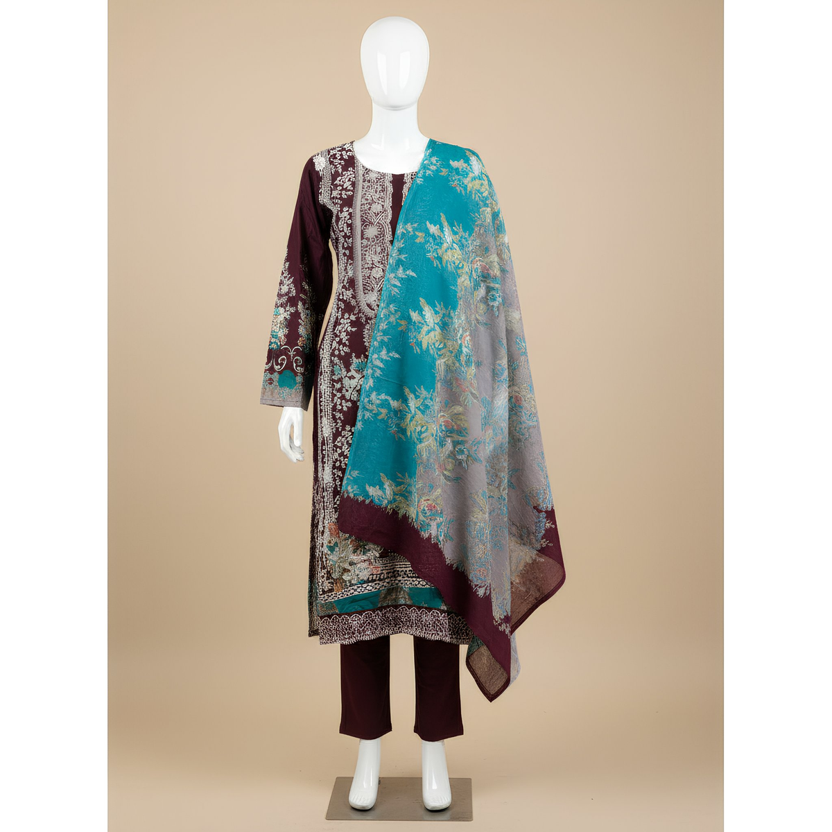 Dupatta: Lightweight printed dupatta featuring soft floral motifs in contrasting tones with a coordinated border that complements the suit beautifully