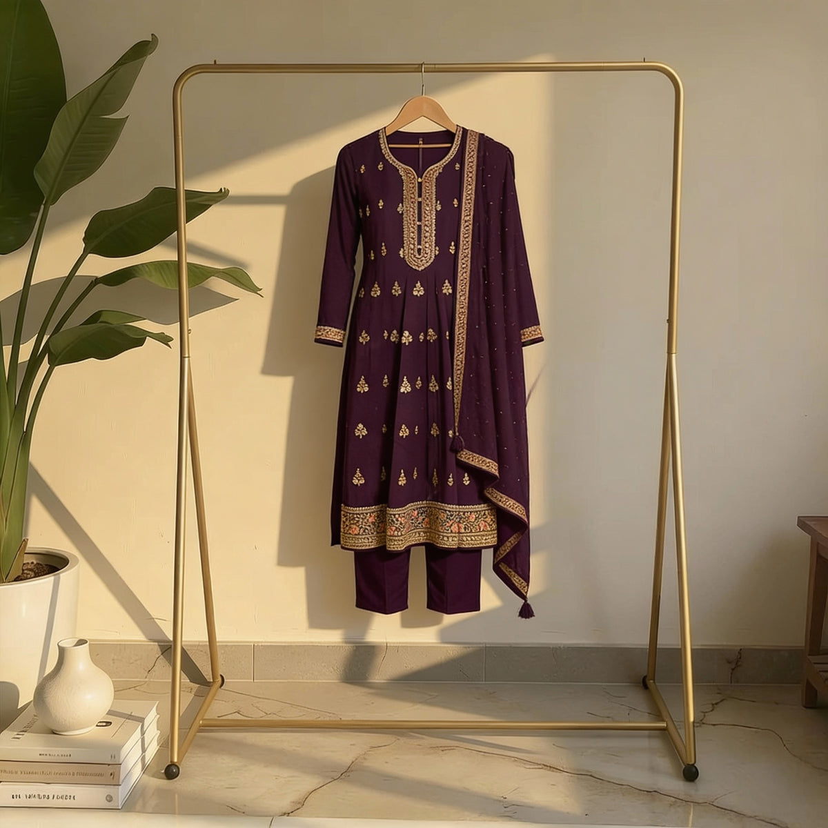 Type: 3-Piece Embroidered Suit Set (Kurta + Pant + Dupatta)